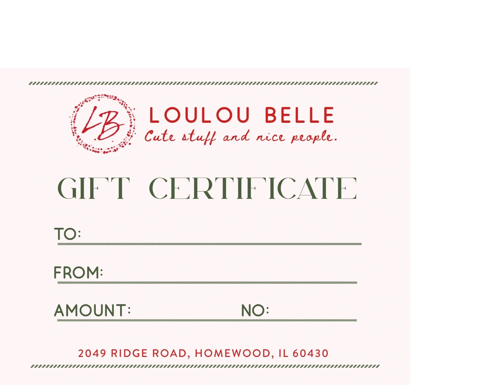 Looking for the perfect gift? Loulou Belle GIFT CARDS are the perfect solution for any occasion!